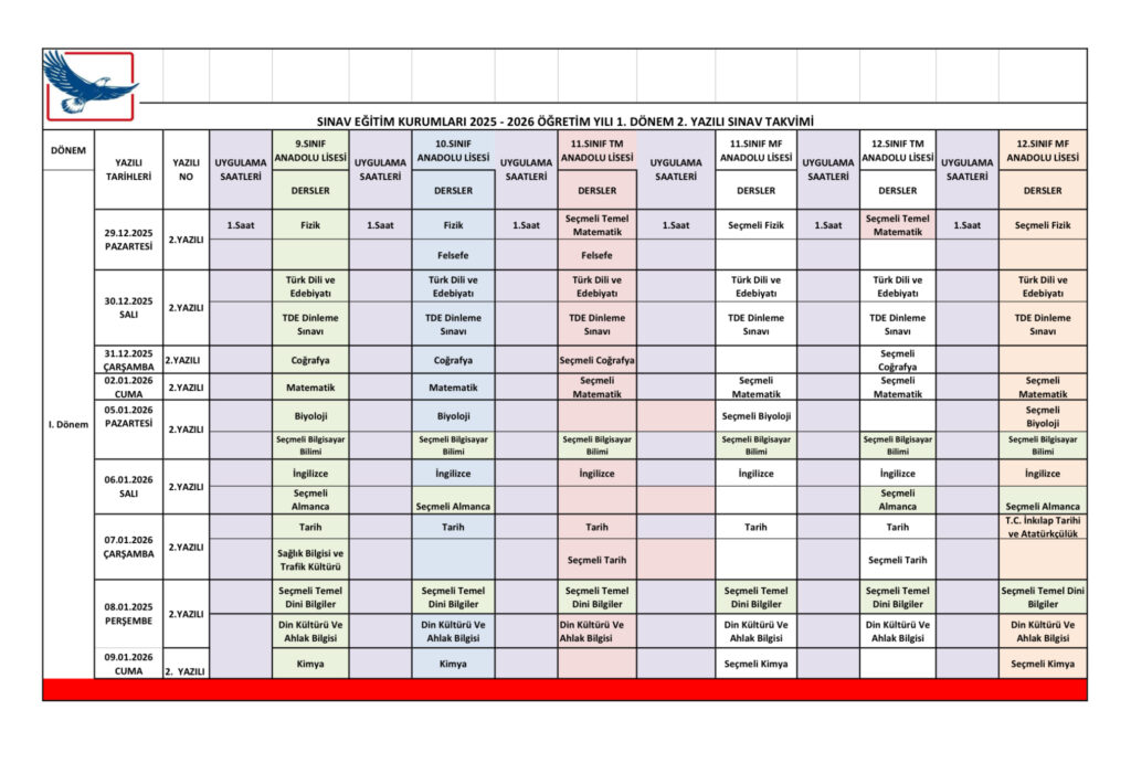 Duyurular ; 1. Dönem 2. Yazılı Sınav takvimi yayınlandı. Uludağ Gezi kayıtları başladı. 11 Ocak Bursluluk Sınavı hakkında bilgi almayı unutmayınız.